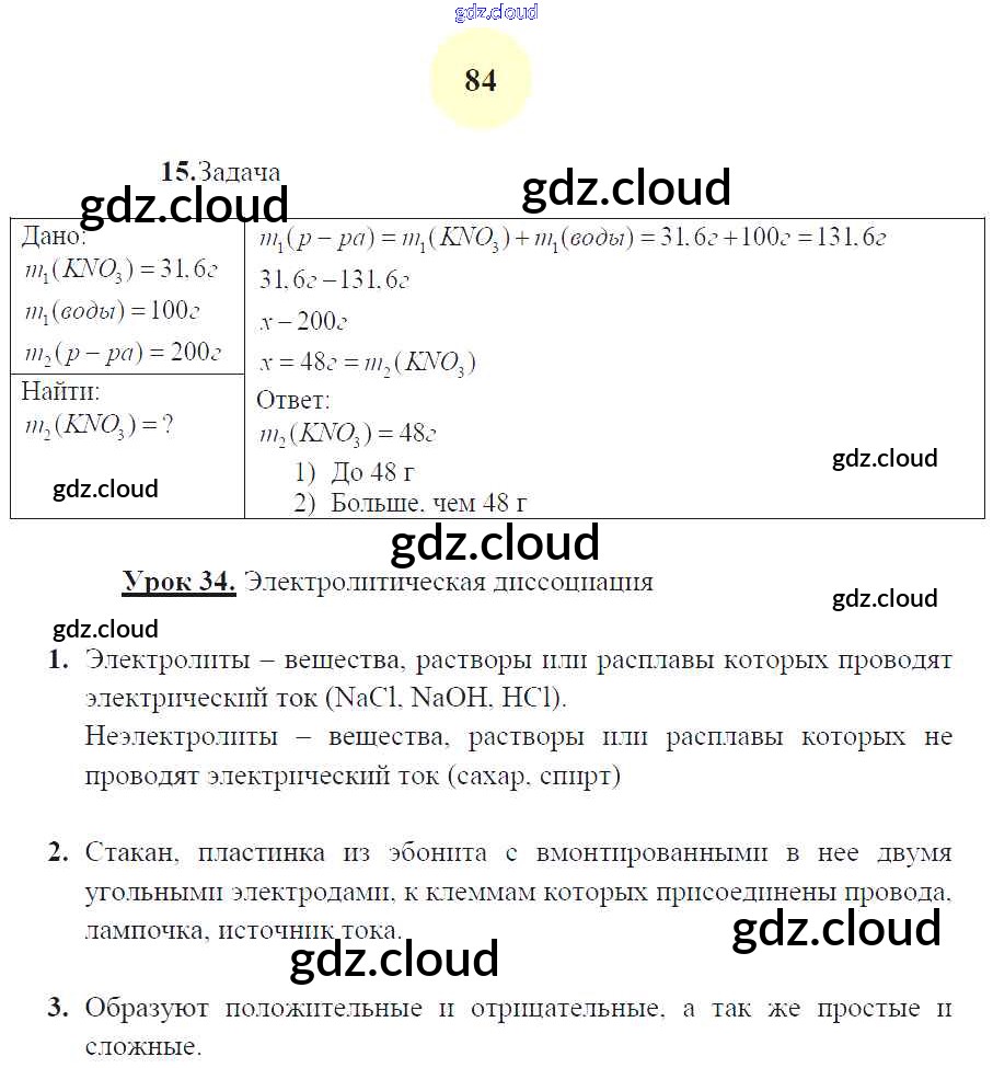 Ответ на задание 84 Рабочая тетрадь Химия за 8 (восьмой) класс Микитюк УМК 2015 ФГОС онлайн и без номера телефона.