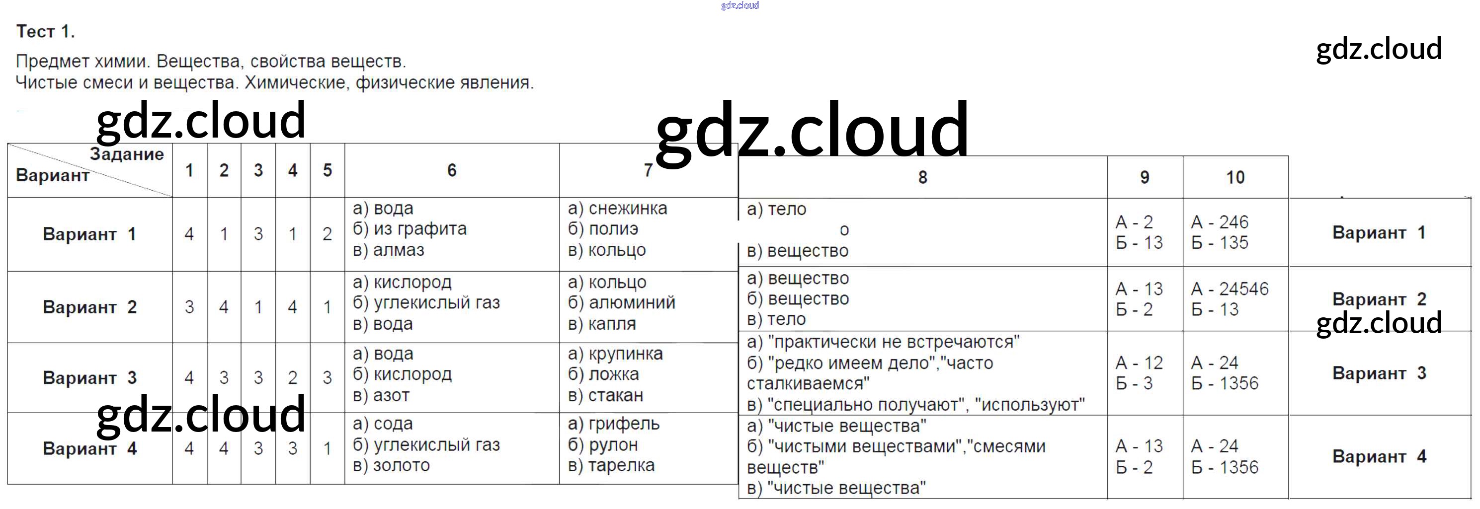 Ответ на задание 1 Тесты Химия за 8 (восьмой) класс Боровских УМК 2013 ФГОС онлайн и без номера телефона.