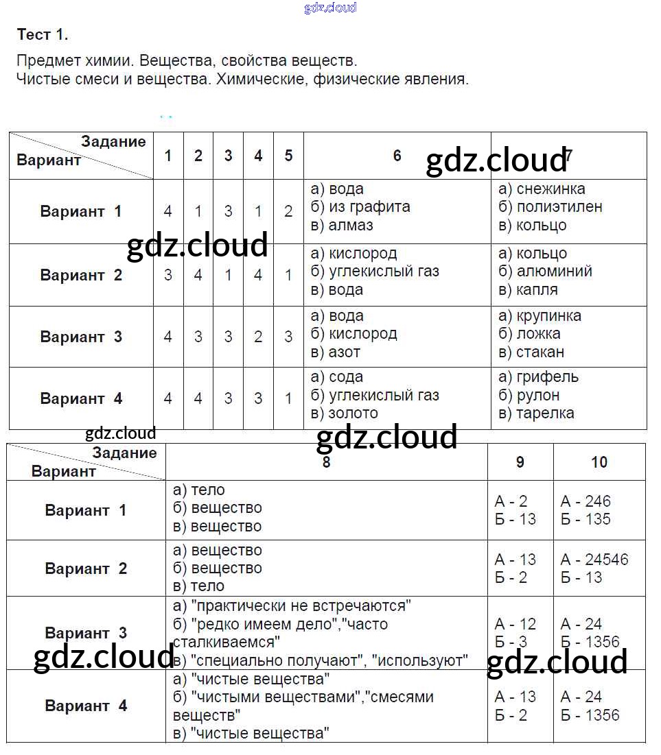 Тест 1 Тесты по Химии 8 класс Тесты Боровских УМК Экзамен