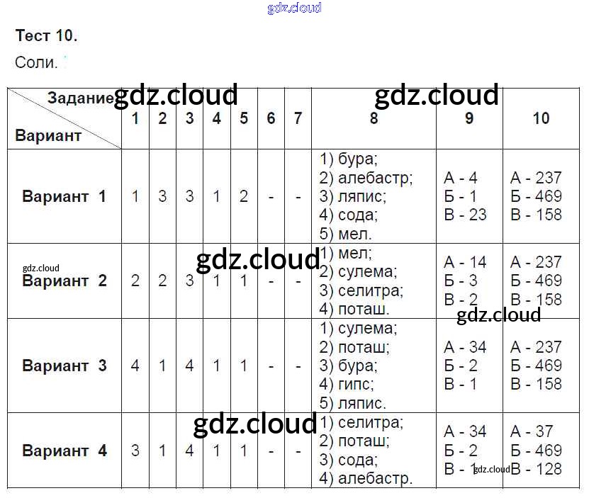 Ответ на задание Тест 10 Тесты Химия за 8 (восьмой) класс Боровских УМК 2013