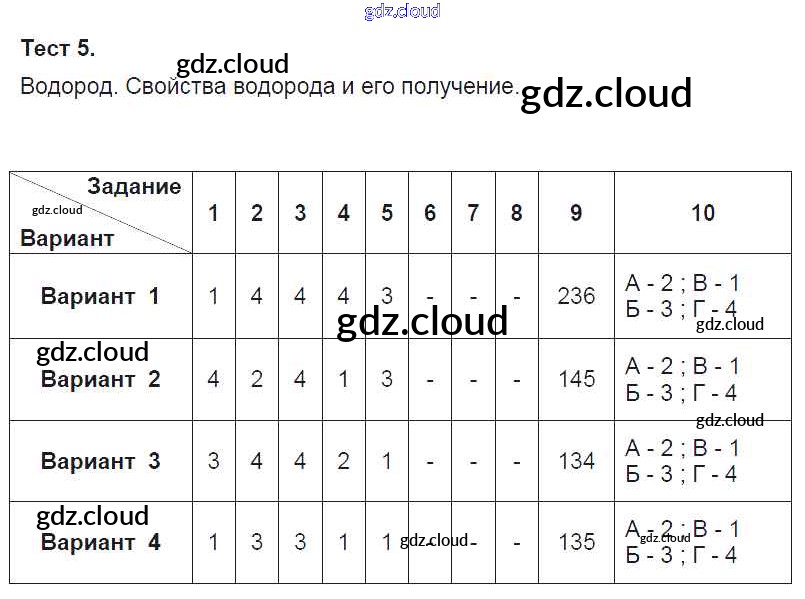 Ответ на задание Тест 5 Тесты Химия за 8 (восьмой) класс Боровских УМК 2013