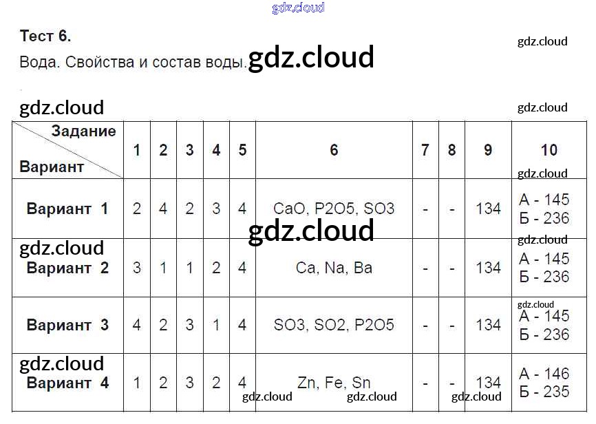 Ответ на задание Тест 6 Тесты Химия за 8 (восьмой) класс Боровских УМК 2013