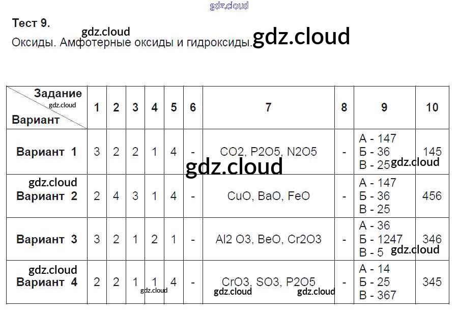 Ответ на задание Тест 9 Тесты Химия за 8 (восьмой) класс Боровских УМК 2013