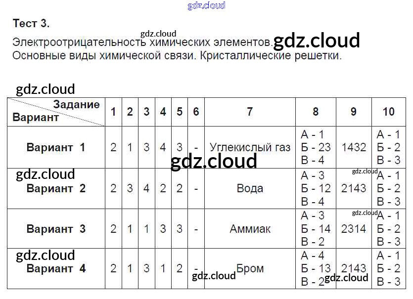 Ответ на задание 3 Тесты Химия за 8 (восьмой) класс Боровских УМК 2013 ФГОС онлайн и без номера телефона.