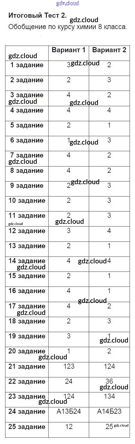 Итоговый тест Ответы к тестам по Химии 8 класс Тесты Боровских УМК Экзамен