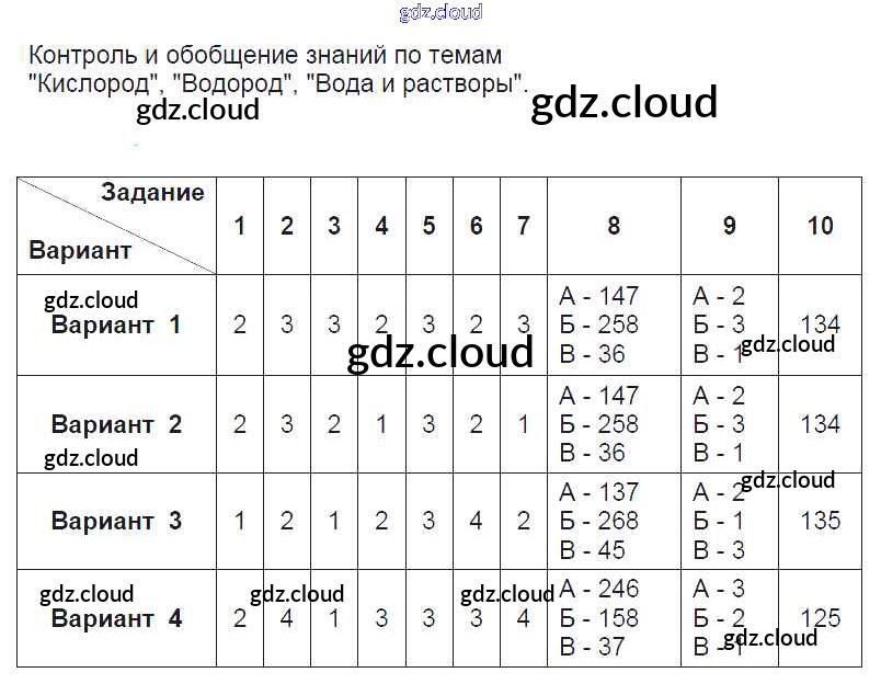 Ответы к контролю и обобщению по Химии 8 класс Тесты Боровских УМК Экзамен