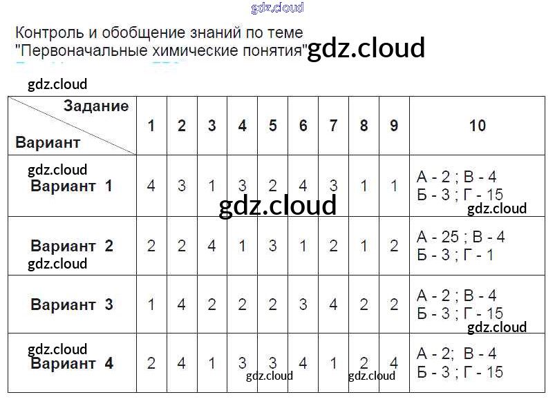 Ответы к контролю и обобщению по Химии 8 класс Тесты Боровских УМК Экзамен
