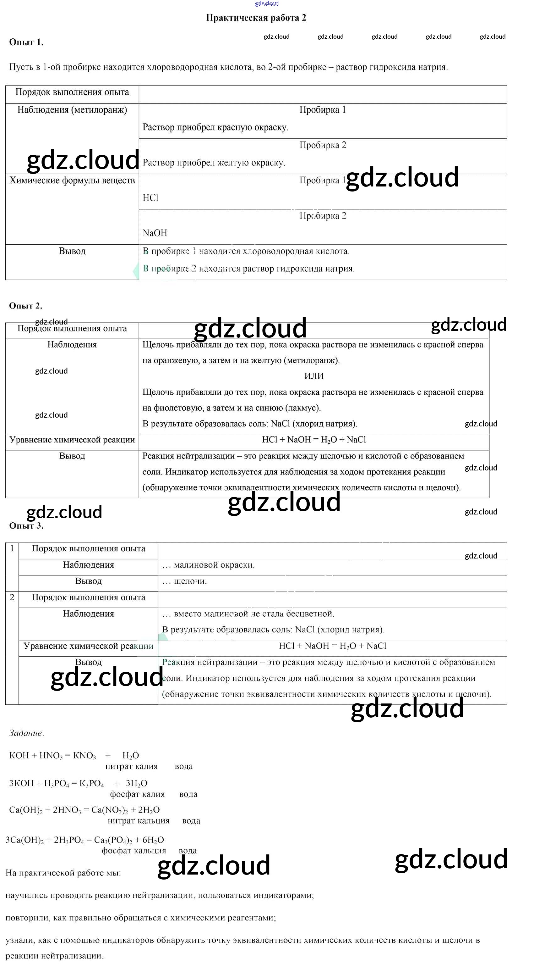 Ответ на задание 2 Тетрадь для практических работ и лабораторных опытов Химия за 8 (восьмой) класс Сечко 2016