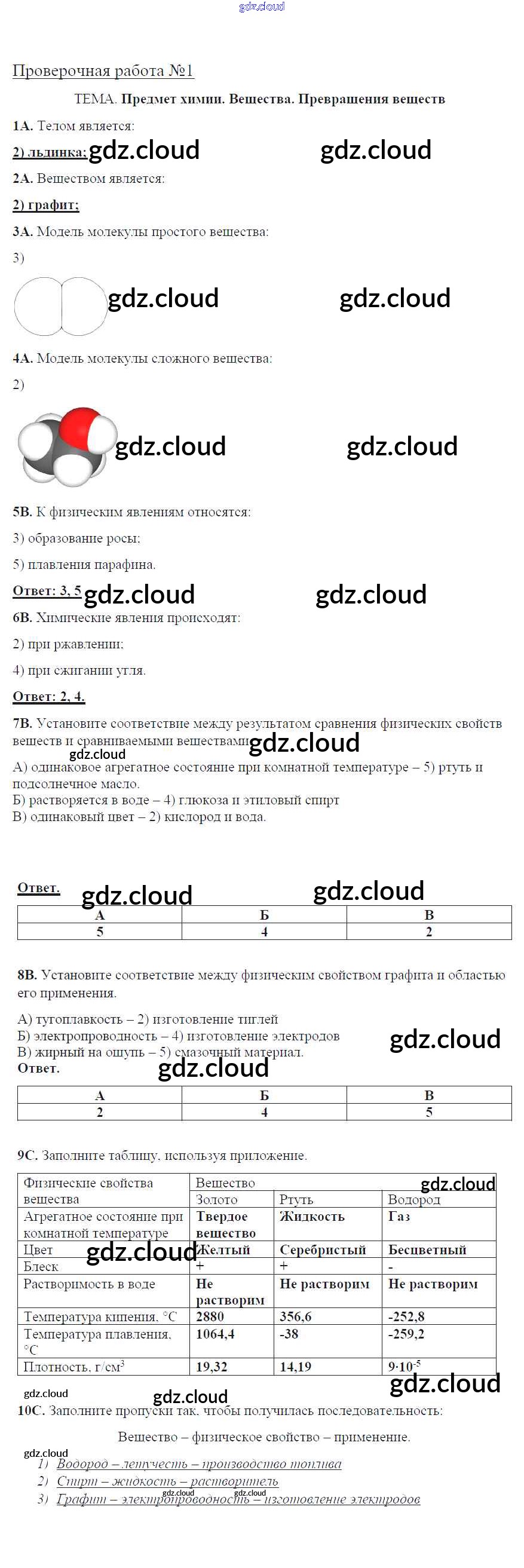 Ответы к проверочным работам по Химии 8 класс Тетрадь для оценки качества знаний Габриелян Вертикаль Дрофа