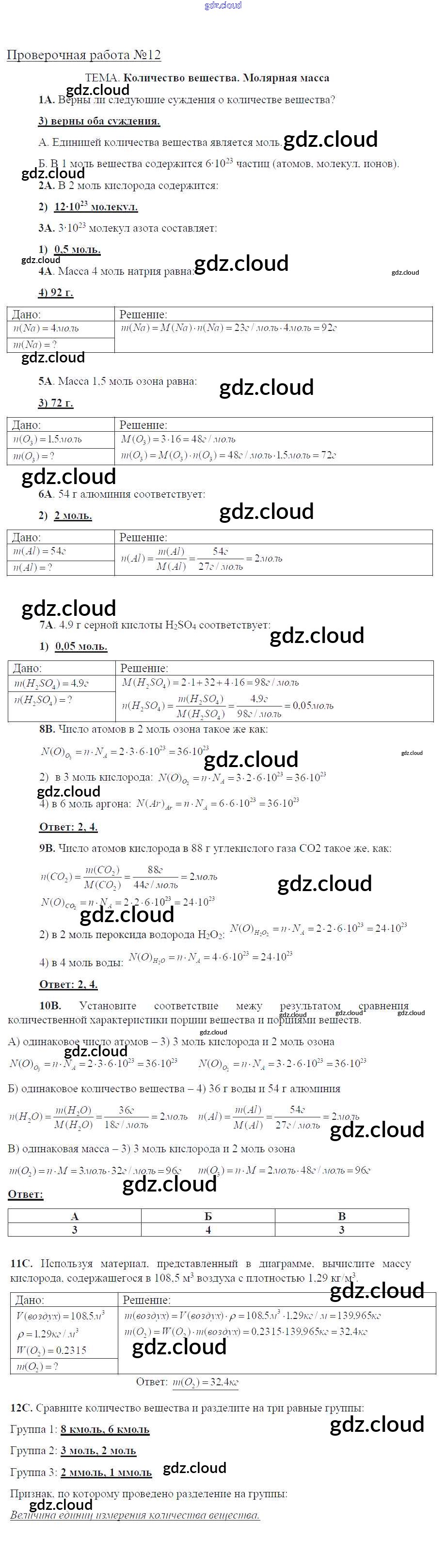 Ответ на задание 12 Тетрадь для оценки качества знаний Химия за 8 (восьмой) класс Габриелян, Купцова Вертикаль 2013