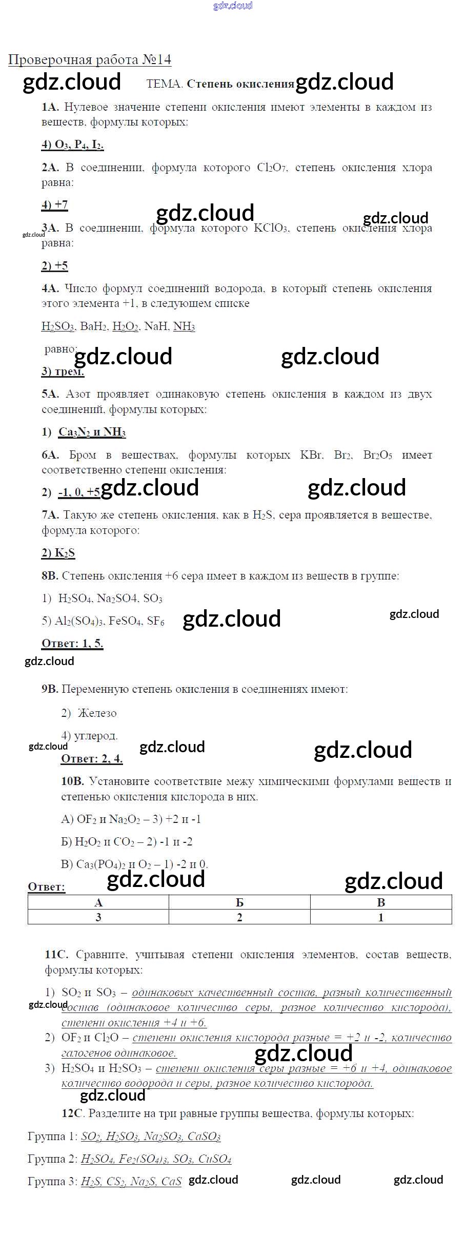 Ответ на задание 14 Тетрадь для оценки качества знаний Химия за 8 (восьмой) класс Габриелян, Купцова Вертикаль 2013