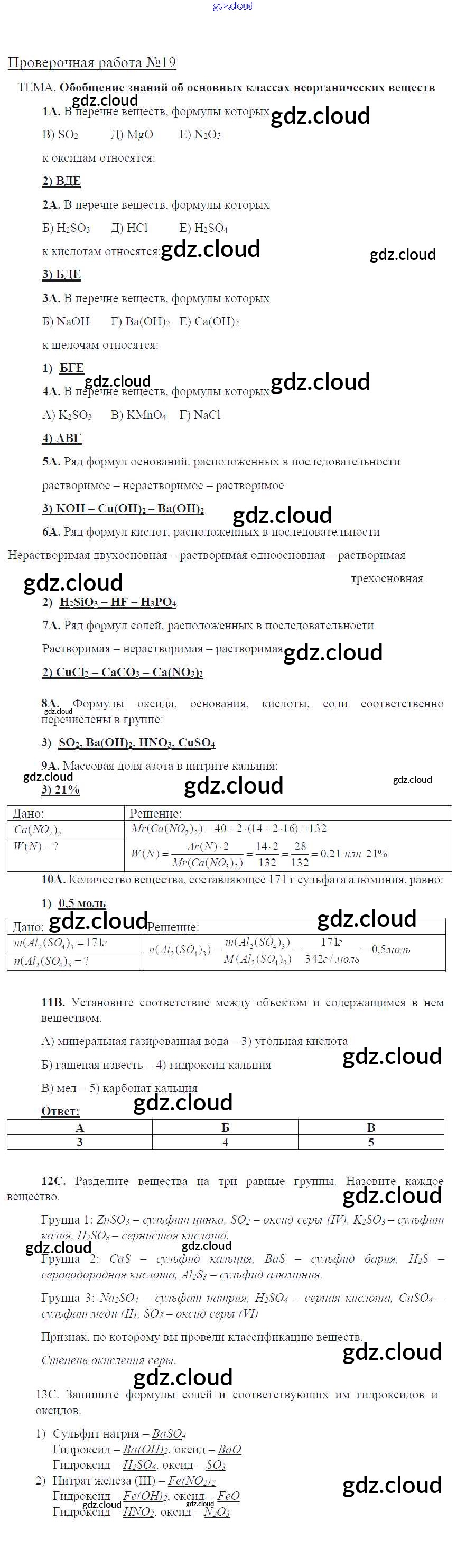 Ответы к проверочным работам по Химии 8 класс Тетрадь для оценки качества знаний Габриелян Вертикаль Дрофа
