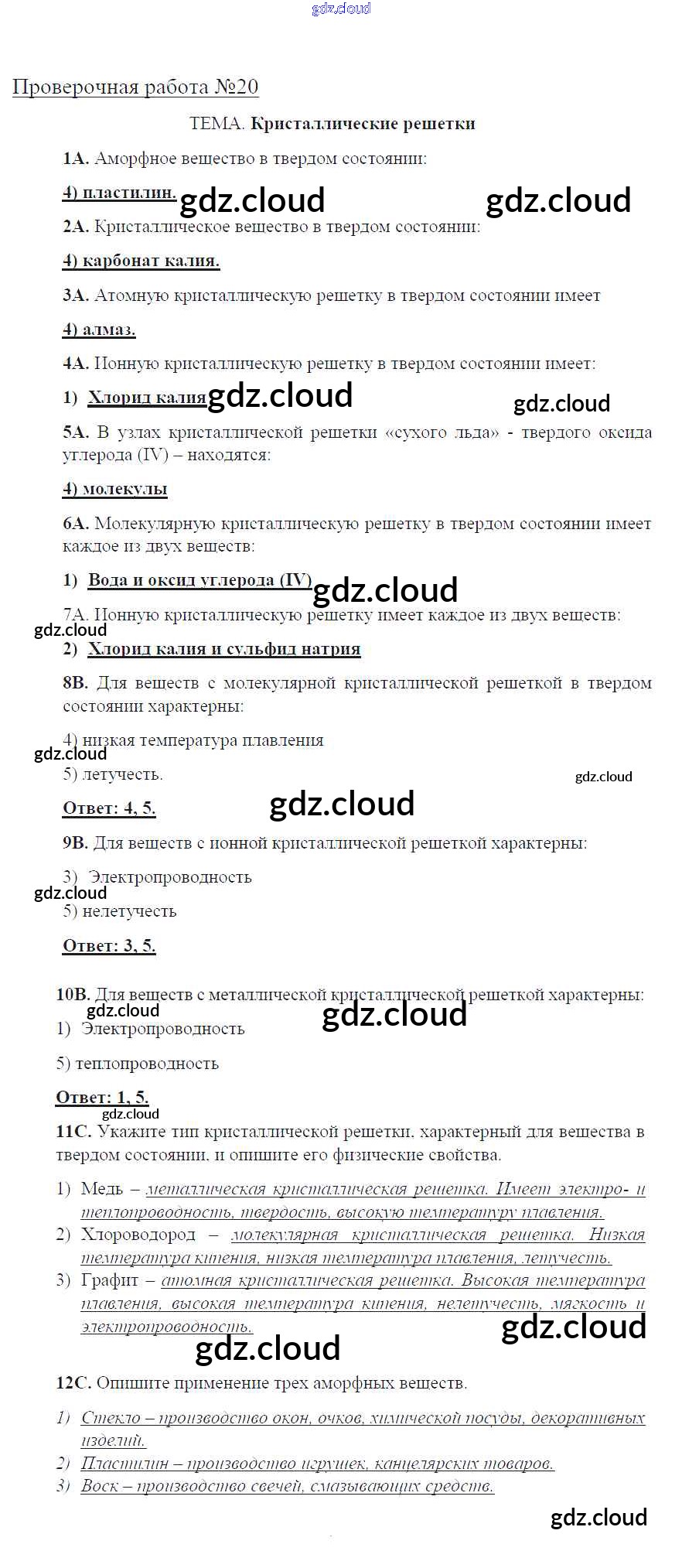Ответ на задание 20 Тетрадь для оценки качества знаний Химия за 8 (восьмой) класс Габриелян, Купцова Вертикаль 2013