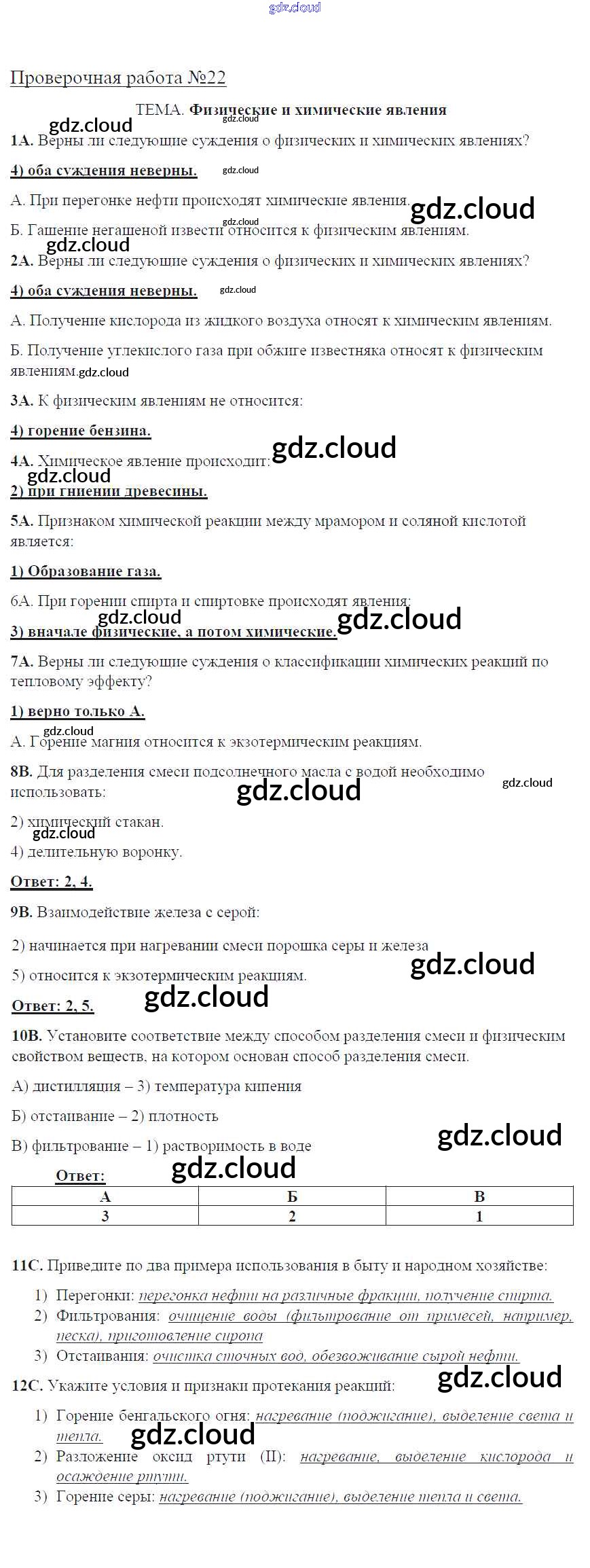 Ответы к проверочным работам по Химии 8 класс Тетрадь для оценки качества знаний Габриелян Вертикаль Дрофа