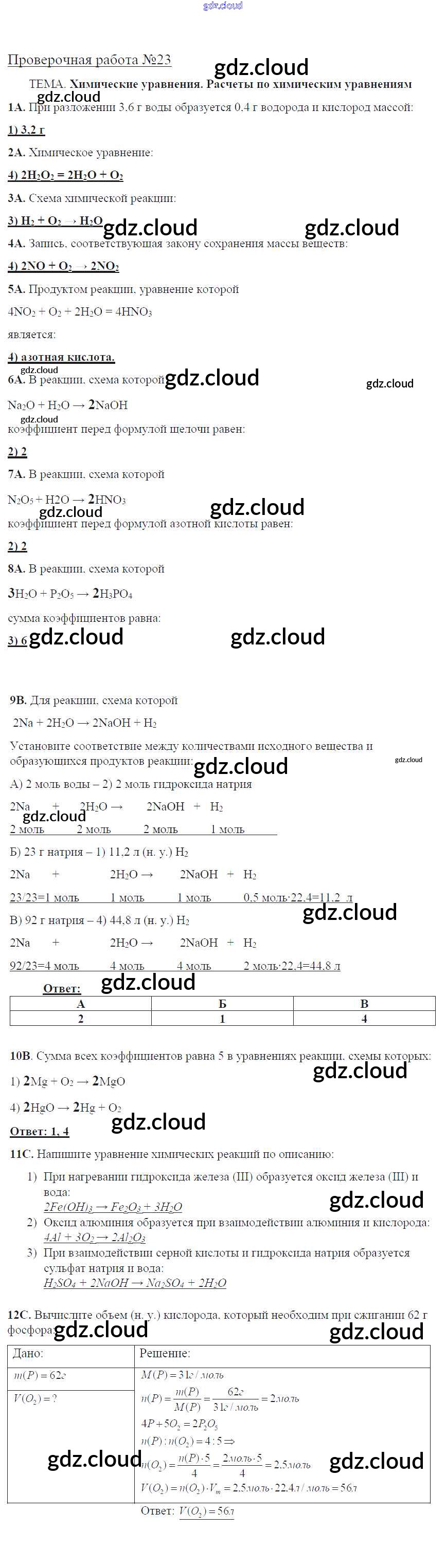 Ответы к проверочным работам по Химии 8 класс Тетрадь для оценки качества знаний Габриелян Вертикаль Дрофа