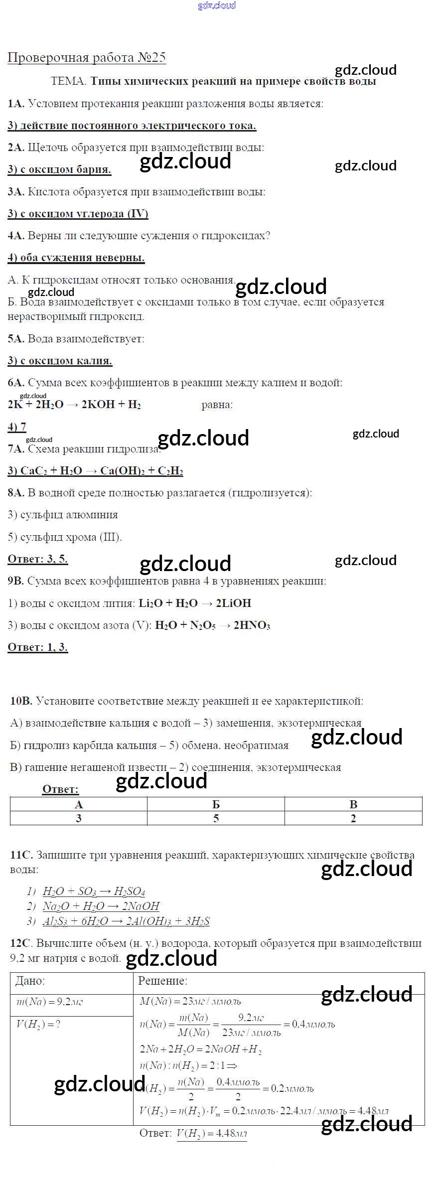 Ответы к проверочным работам по Химии 8 класс Тетрадь для оценки качества знаний Габриелян Вертикаль Дрофа
