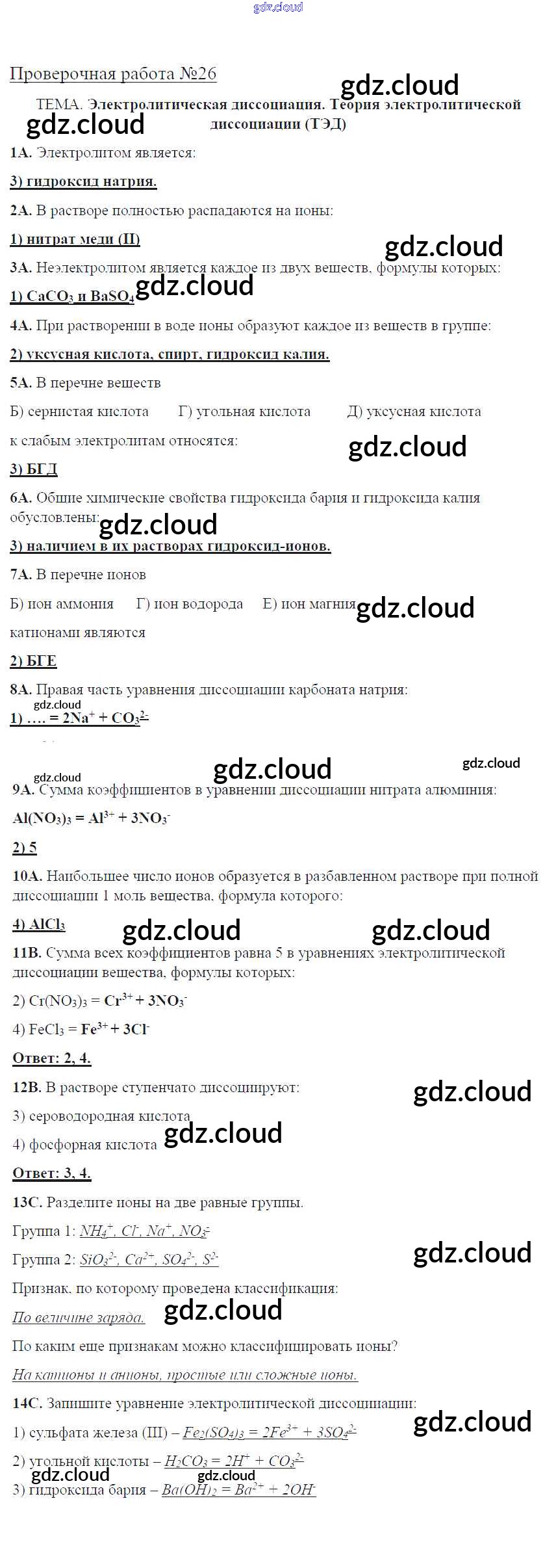 Ответ на задание 26 Тетрадь для оценки качества знаний Химия за 8 (восьмой) класс Габриелян, Купцова Вертикаль 2013