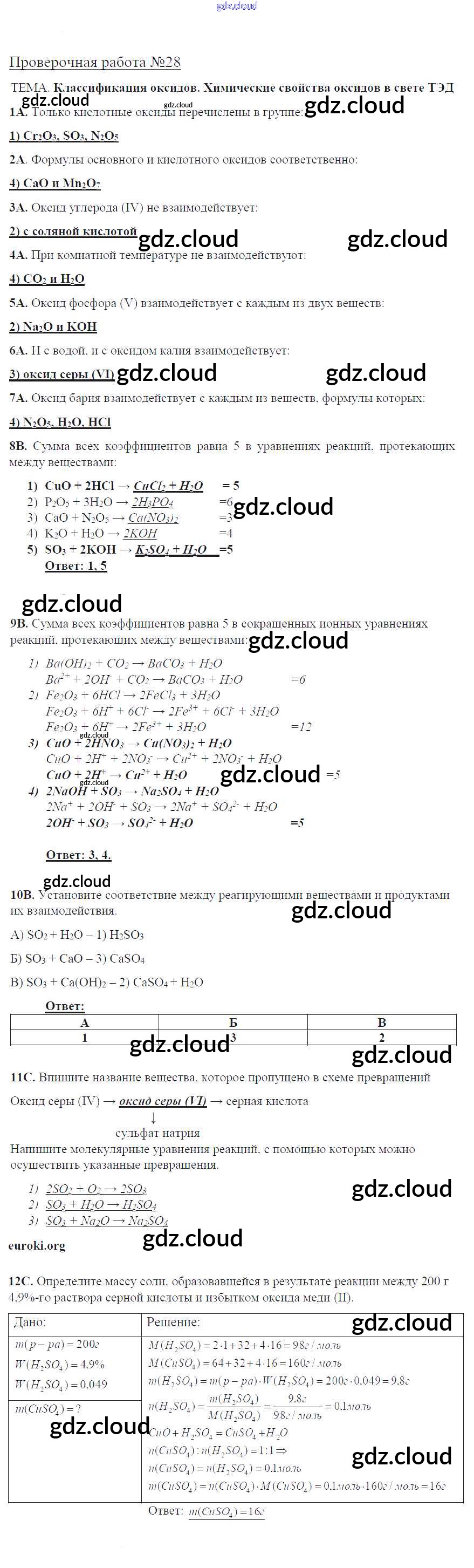 Ответ на задание 28 Тетрадь для оценки качества знаний Химия за 8 (восьмой) класс Габриелян, Купцова Вертикаль 2013