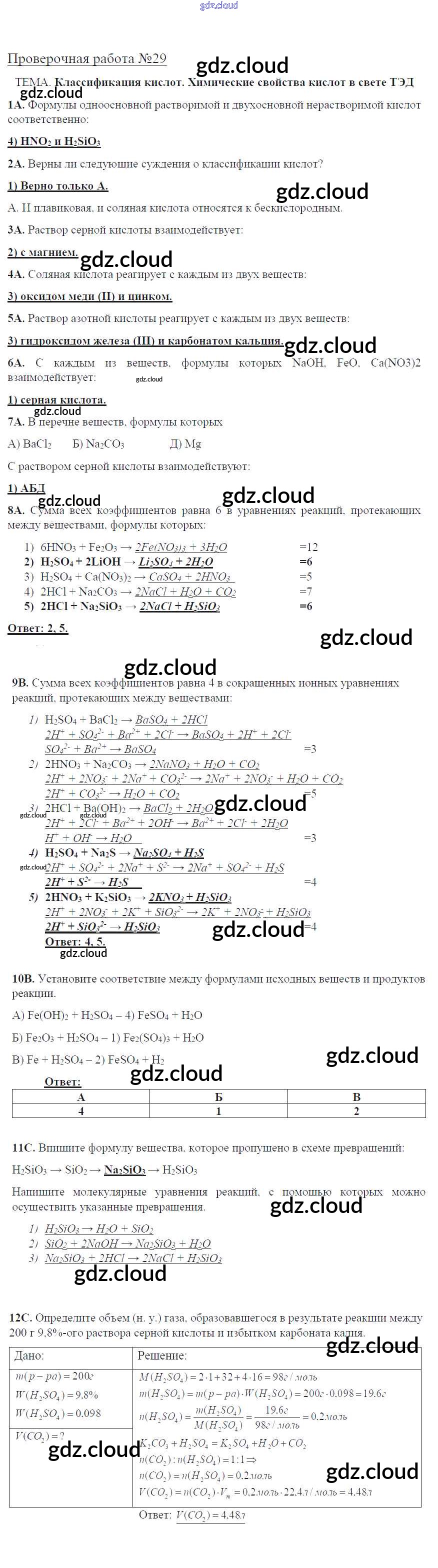 Ответ на задание 29 Тетрадь для оценки качества знаний Химия за 8 (восьмой) класс Габриелян, Купцова Вертикаль 2013