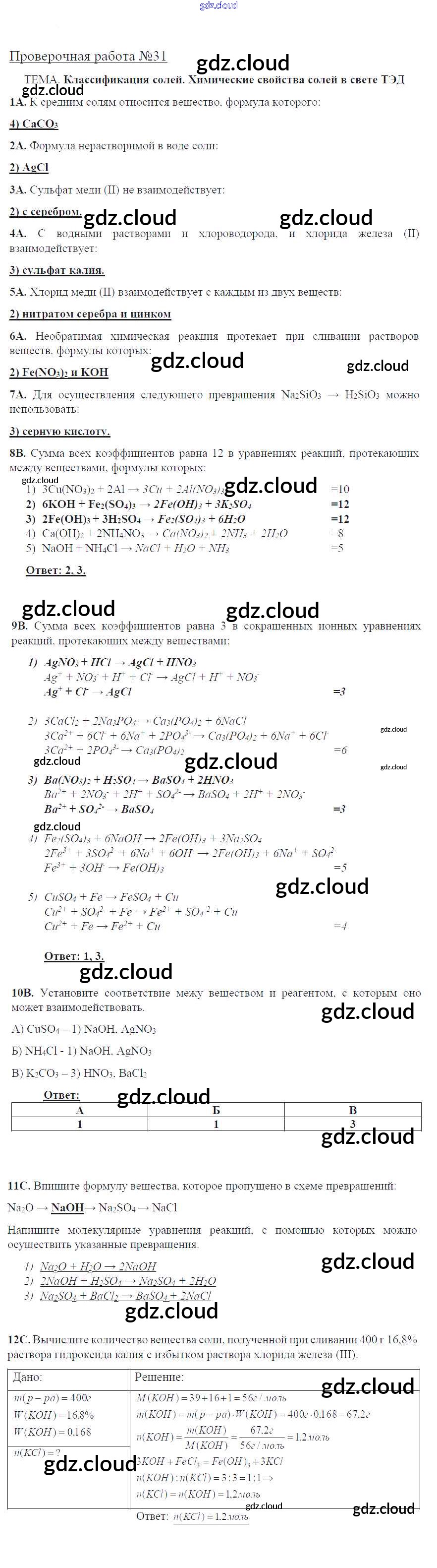Ответ на задание 31 Тетрадь для оценки качества знаний Химия за 8 (восьмой) класс Габриелян, Купцова Вертикаль 2013