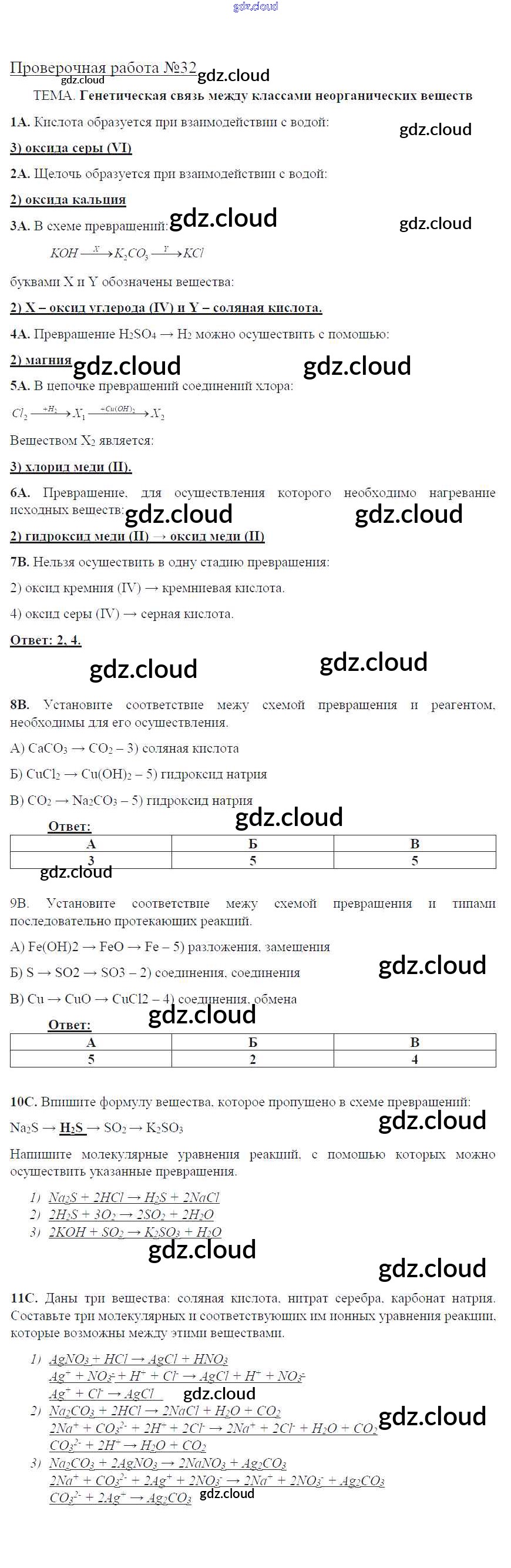 Ответы к проверочным работам по Химии 8 класс Тетрадь для оценки качества знаний Габриелян Вертикаль Дрофа