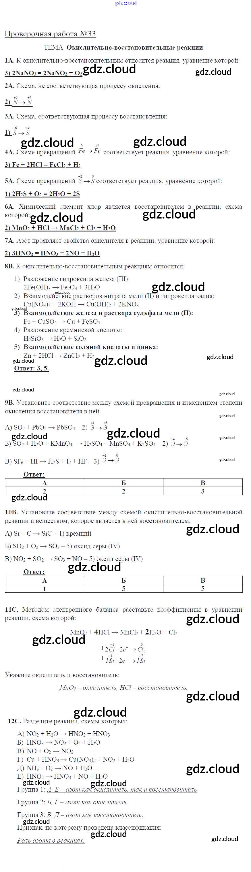 Ответ на задание 33 Тетрадь для оценки качества знаний Химия за 8 (восьмой) класс Габриелян, Купцова Вертикаль 2013