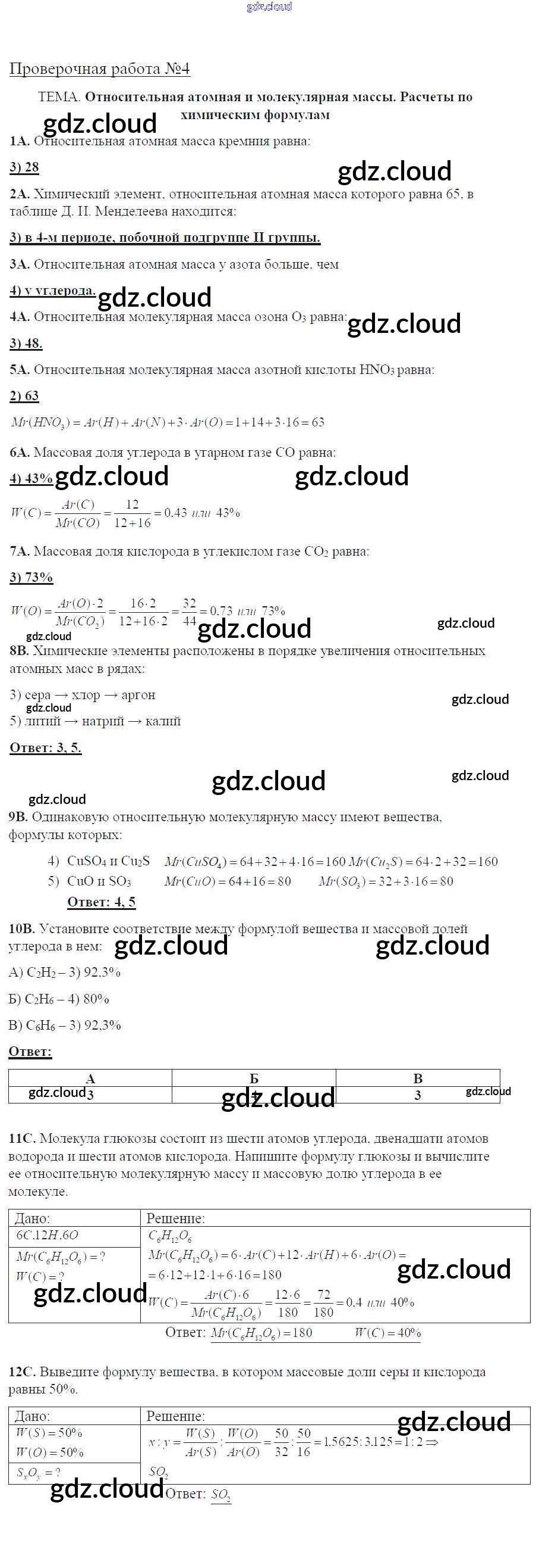 Ответы к проверочным работам по Химии 8 класс Тетрадь для оценки качества знаний Габриелян Вертикаль Дрофа