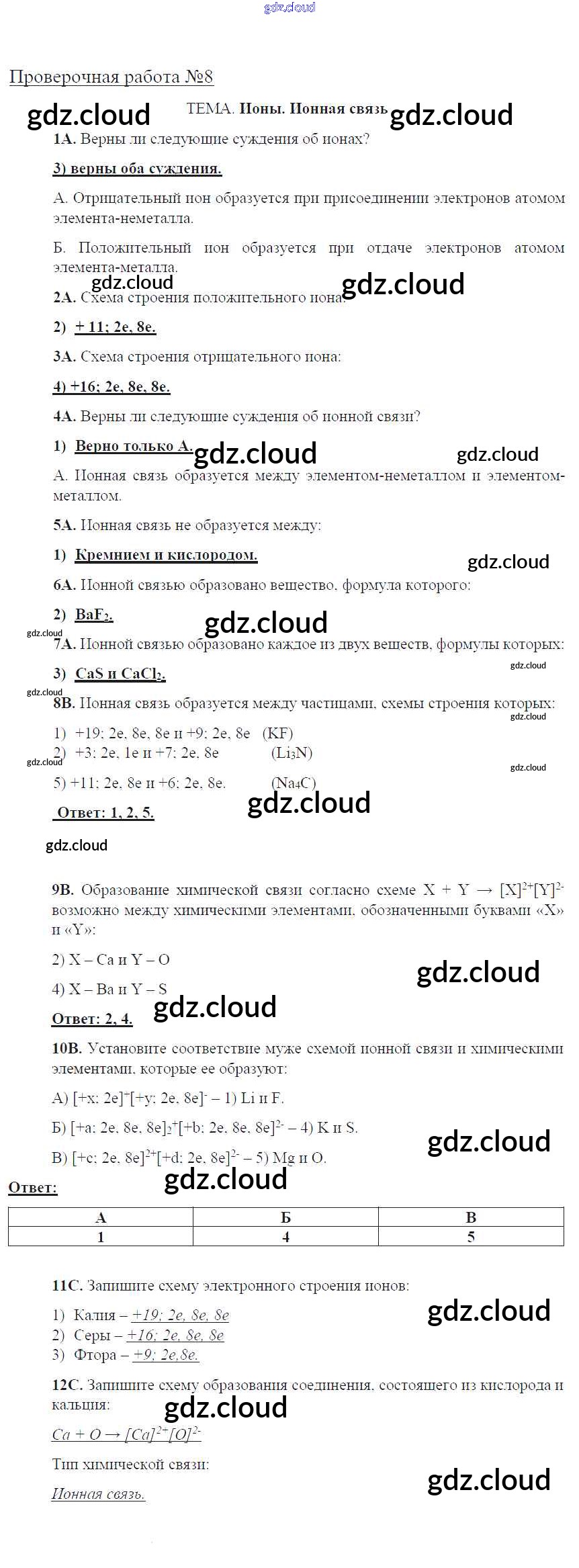 Ответы к проверочным работам по Химии 8 класс Тетрадь для оценки качества знаний Габриелян Вертикаль Дрофа