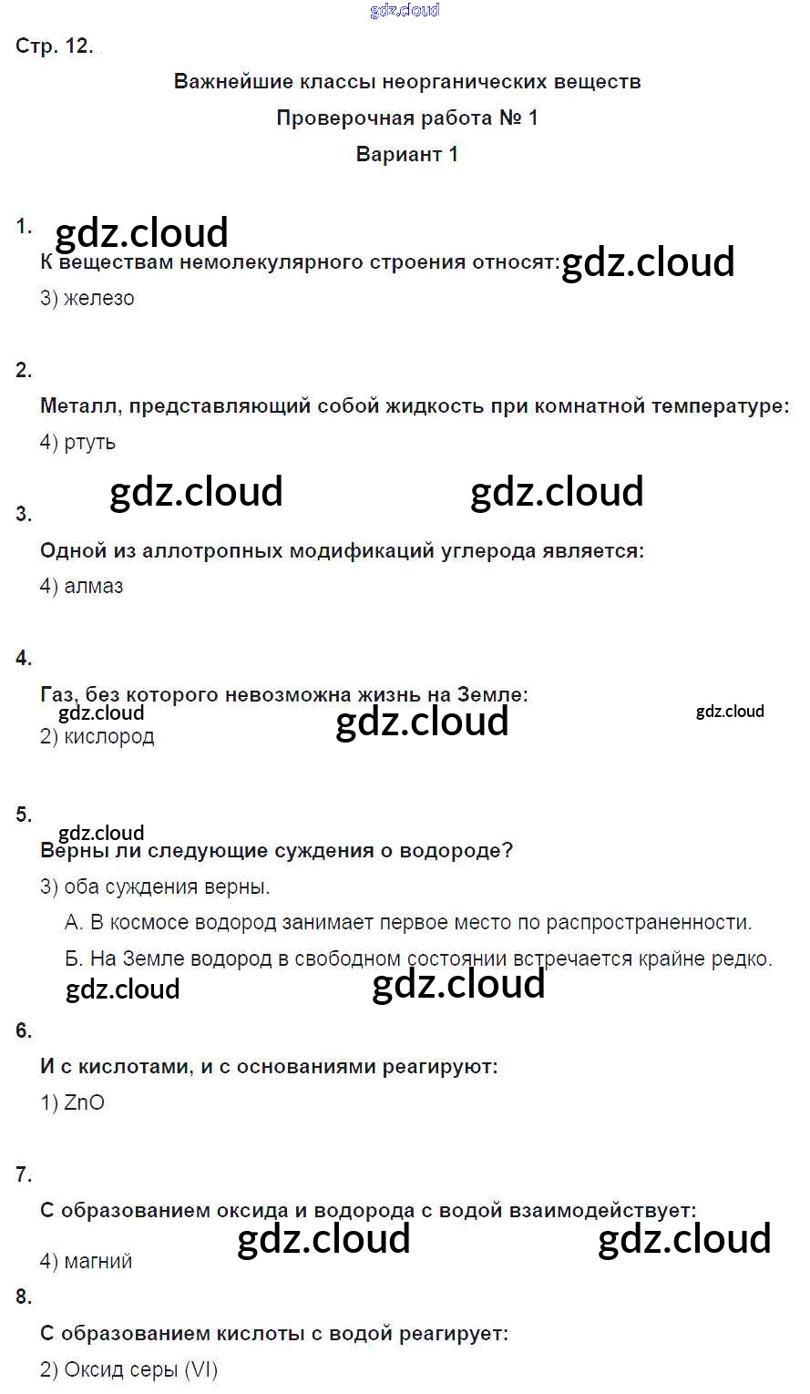 Ответ на задание 12 Тетрадь-экзаменатор Химия за 8 (восьмой) класс Бобылева, Бирюлина, Дмитриева, Тараканова Сферы 2016 ФГОС онлайн и без номера телефона.