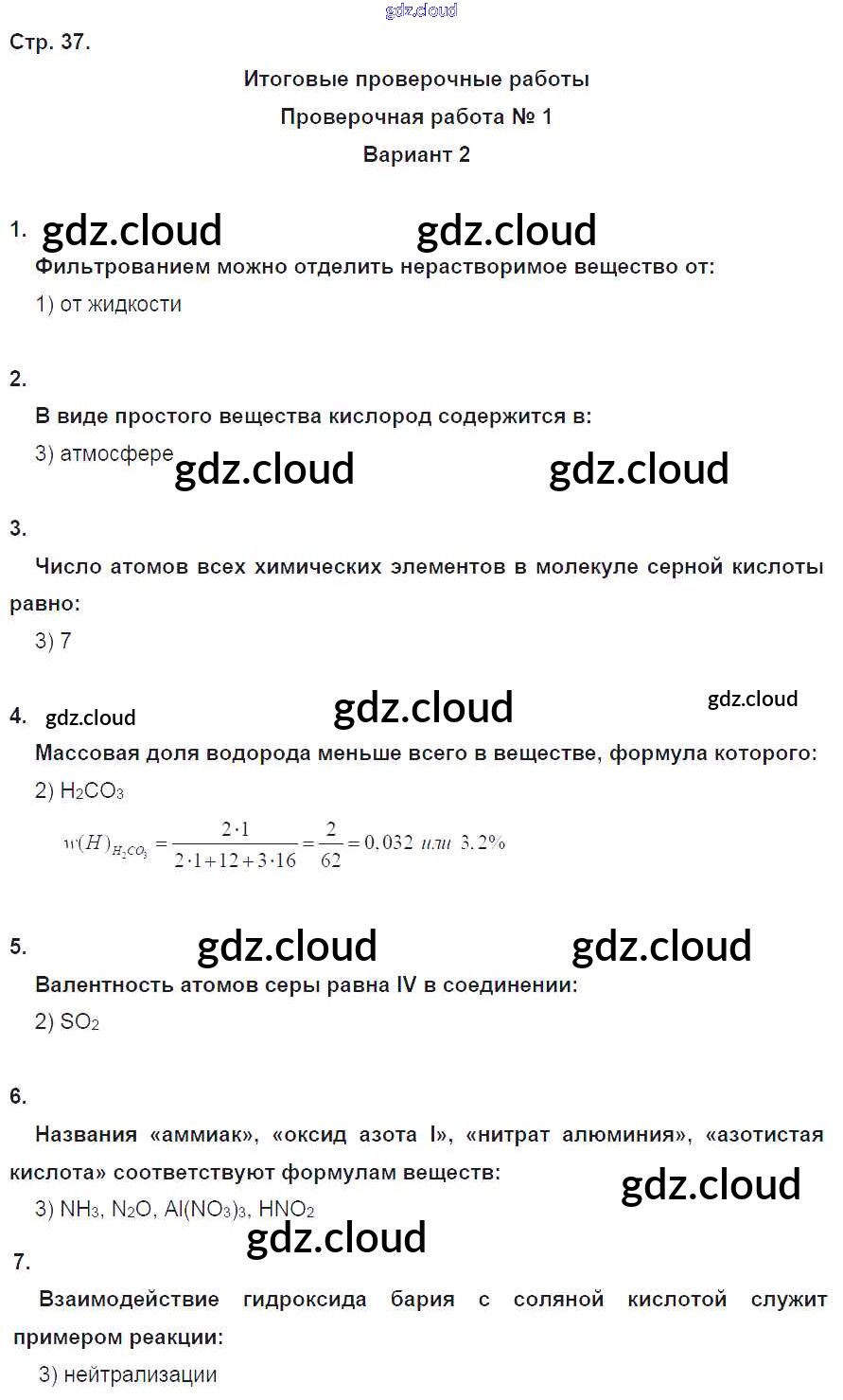 Ответ на задание 37 Тетрадь-экзаменатор Химия за 8 (восьмой) класс Бобылева, Бирюлина, Дмитриева, Тараканова Сферы 2016 ФГОС онлайн и без номера телефона.