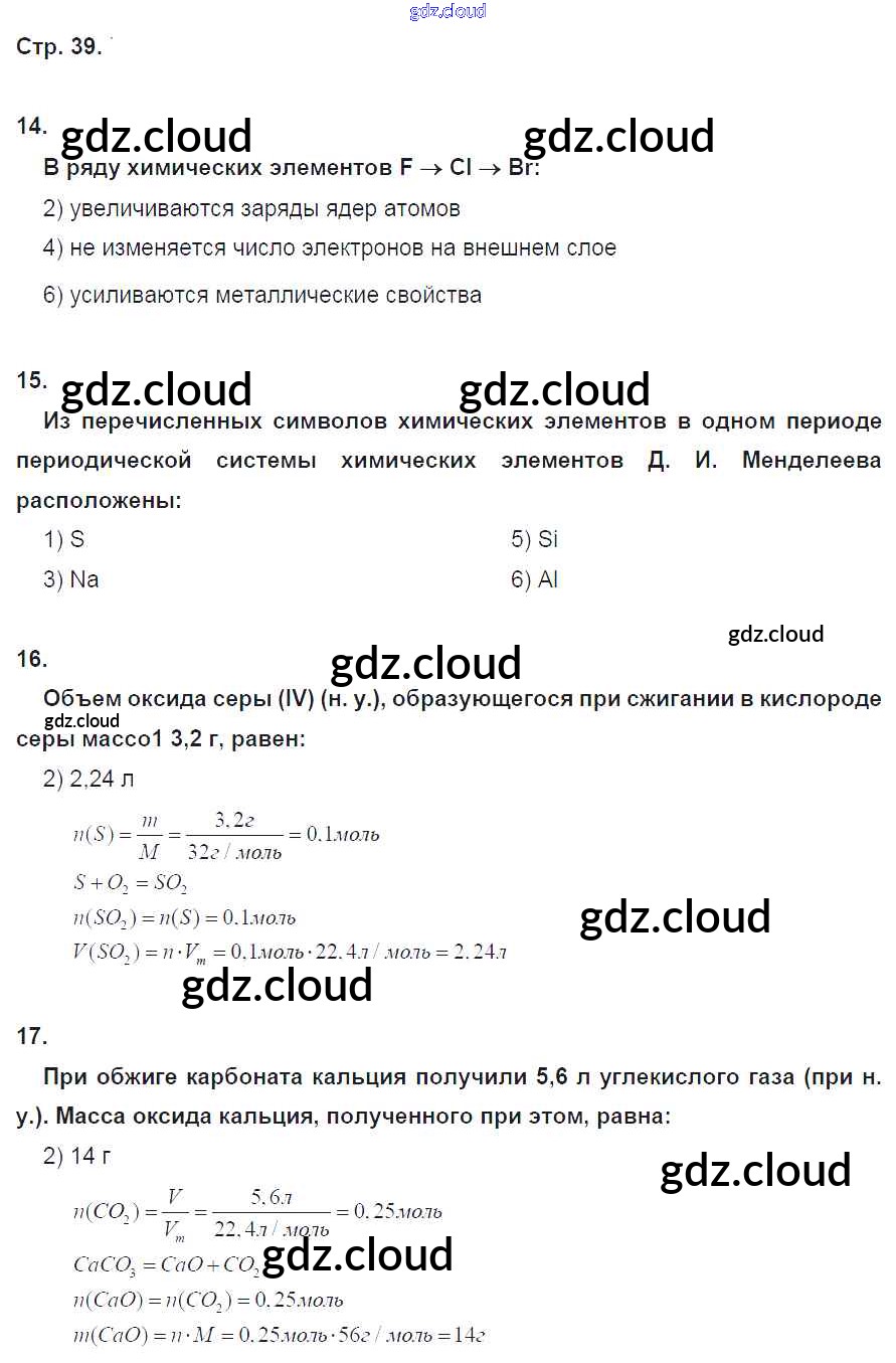 Ответ на задание 39 Тетрадь-экзаменатор Химия за 8 (восьмой) класс Бобылева, Бирюлина, Дмитриева, Тараканова Сферы 2016 ФГОС онлайн и без номера телефона.