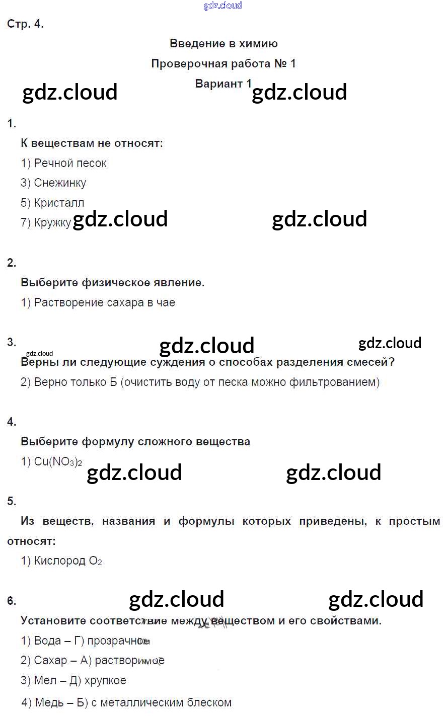 Ответы к страницам по Химии 8 класс Тетрадь-экзаменатор Бобылева Сферы Просвещение