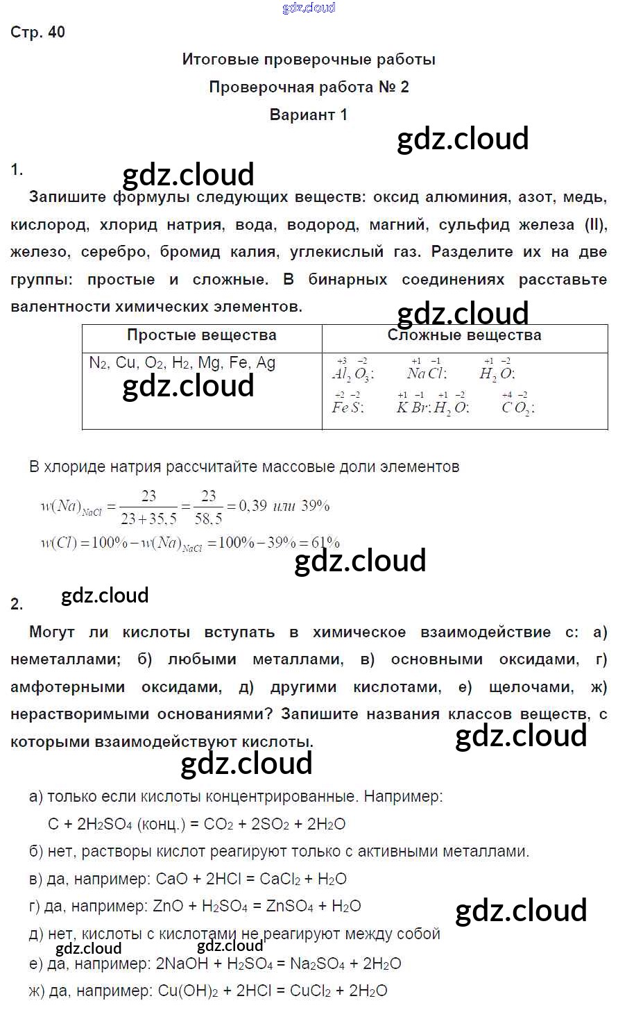 Ответ на задание 40 Тетрадь-экзаменатор Химия за 8 (восьмой) класс Бобылева, Бирюлина, Дмитриева, Тараканова Сферы 2016 ФГОС онлайн и без номера телефона.