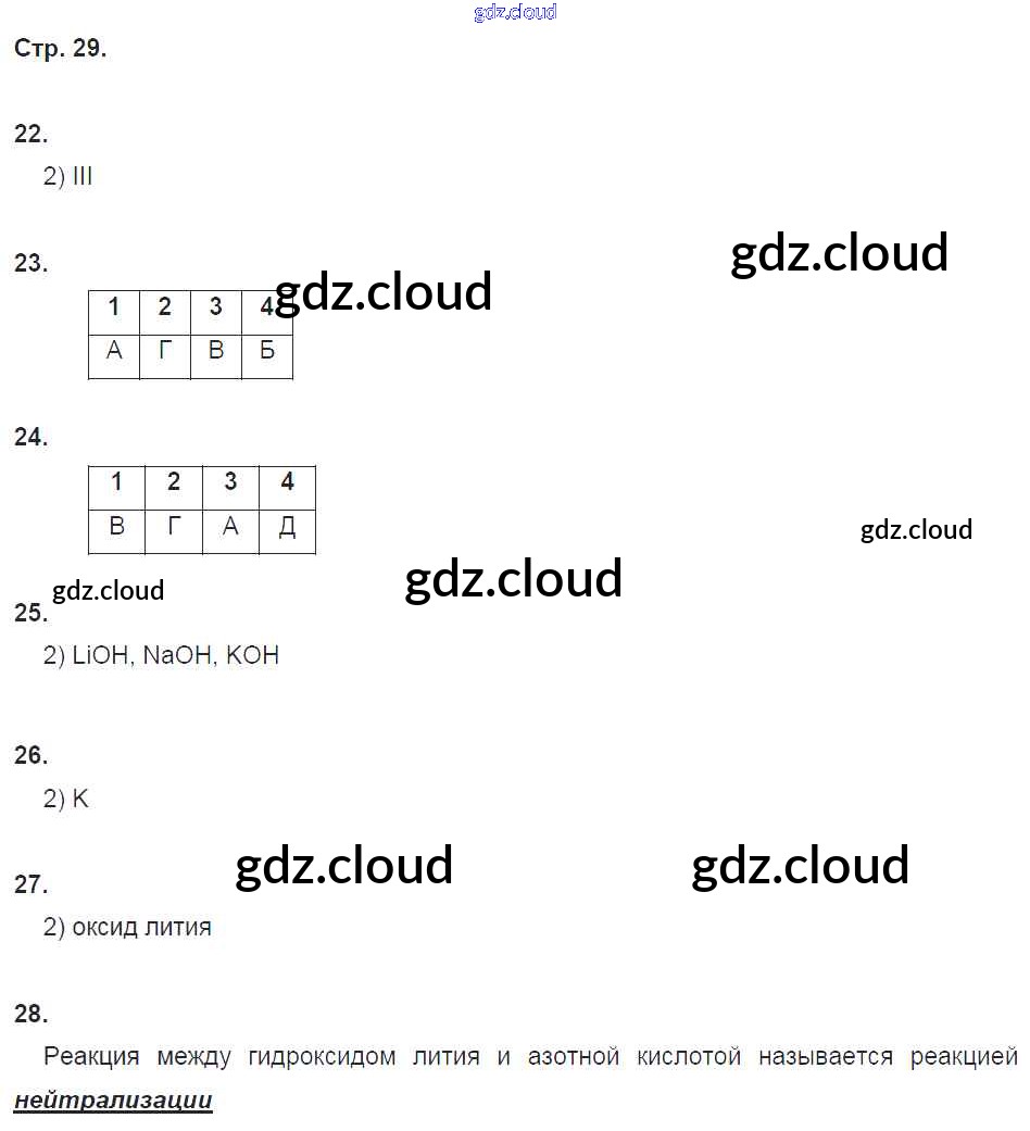 Ответ на задание 29 Тетрадь-тренажер Химия за 8 (восьмой) класс Гара Сферы 2017 ФГОС онлайн и без номера телефона.