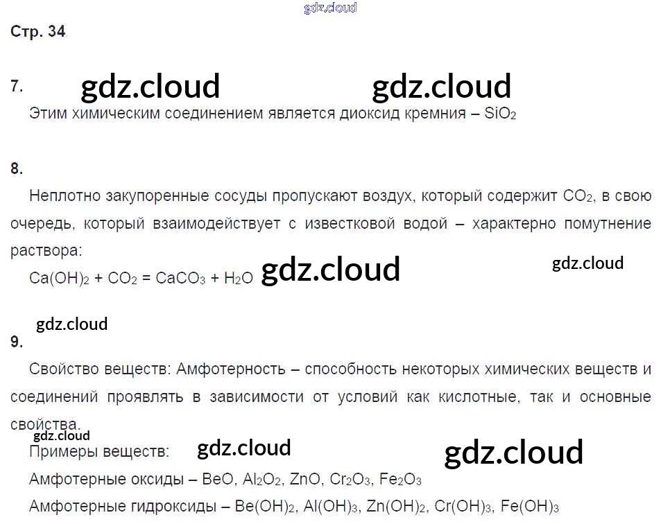 Ответ на задание 34 Тетрадь-тренажер Химия за 8 (восьмой) класс Гара Сферы 2017 ФГОС онлайн и без номера телефона.