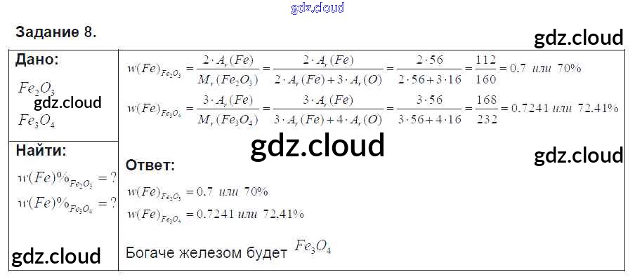 Ответ на задание 8 Учебник Химия за 8 (восьмой) класс Рудзитис, Фельдман УМК 2016 ФГОС онлайн и без номера телефона.