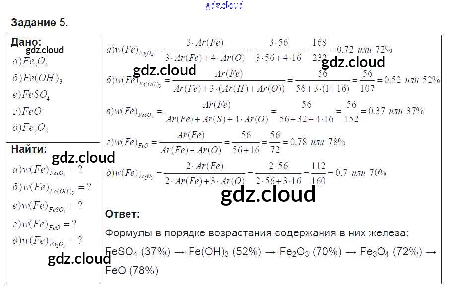 Ответ на задание 5 Учебник Химия за 8 (восьмой) класс Рудзитис, Фельдман УМК 2016 ФГОС онлайн и без номера телефона.