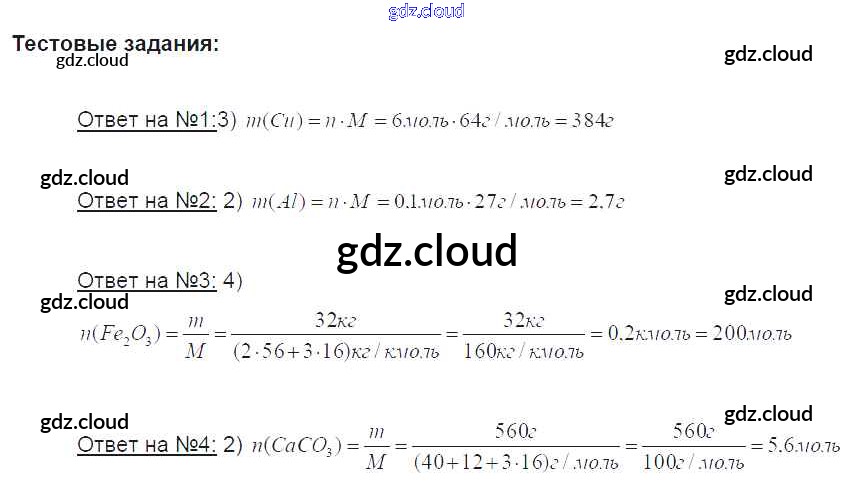 Тестовые задания. Параграфы Ответы к новому изданию по Химии 8 класс Учебник Рудзитис УМК Просвещение