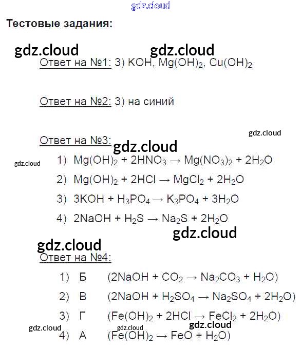 Тестовые задания. Параграфы Ответы к новому изданию по Химии 8 класс Учебник Рудзитис УМК Просвещение