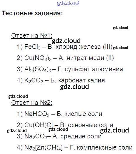 Тестовые задания. Параграфы Ответы к новому изданию по Химии 8 класс Учебник Рудзитис УМК Просвещение
