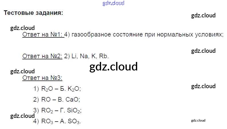 Тестовые задания. Параграфы Ответы к новому изданию по Химии 8 класс Учебник Рудзитис УМК Просвещение
