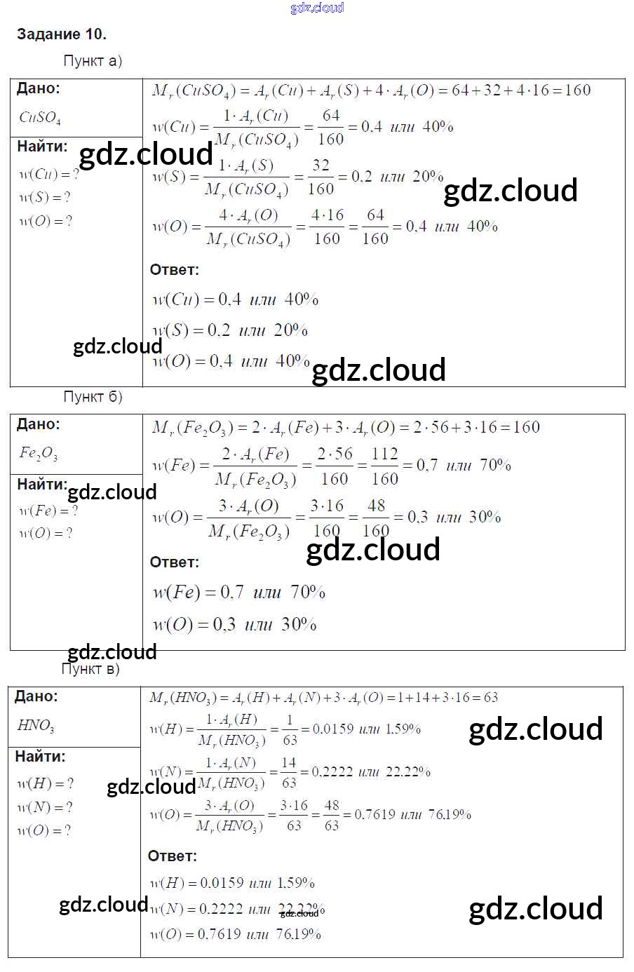 Ответ на задание 10 Учебник Химия за 8 (восьмой) класс Рудзитис, Фельдман УМК 2016