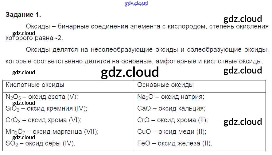 Ответ на задание 1 Учебник Химия за 8 (восьмой) класс Рудзитис, Фельдман УМК 2016