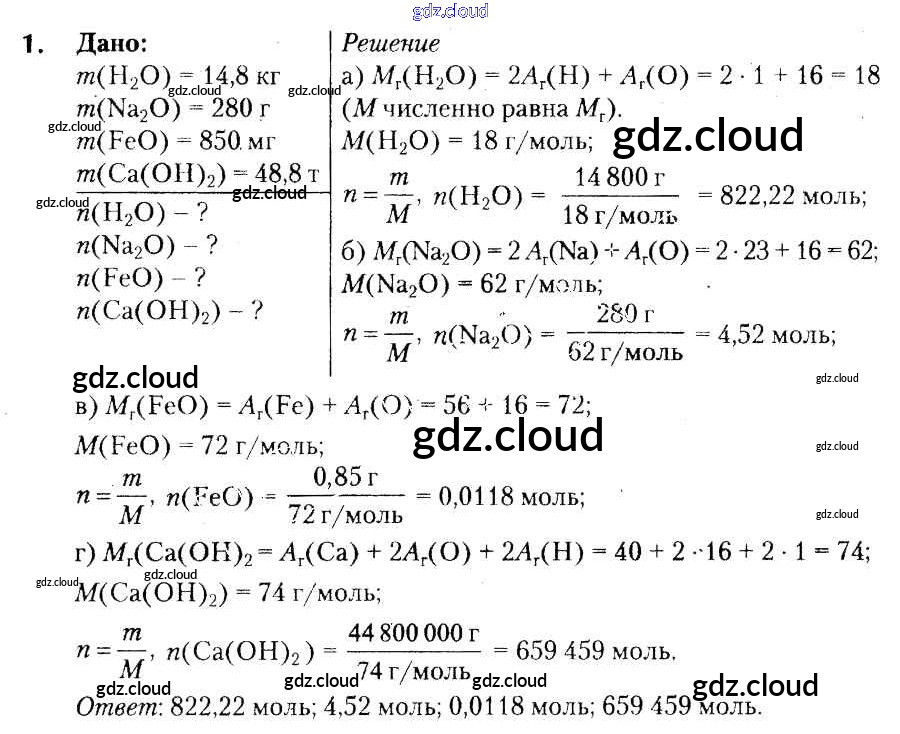 Ответы к §6. Вычисление химического количества вещества по его массе и массы вещества по его химическому количеству по Химии 8 класс Учебник Шиманович Народная асвета