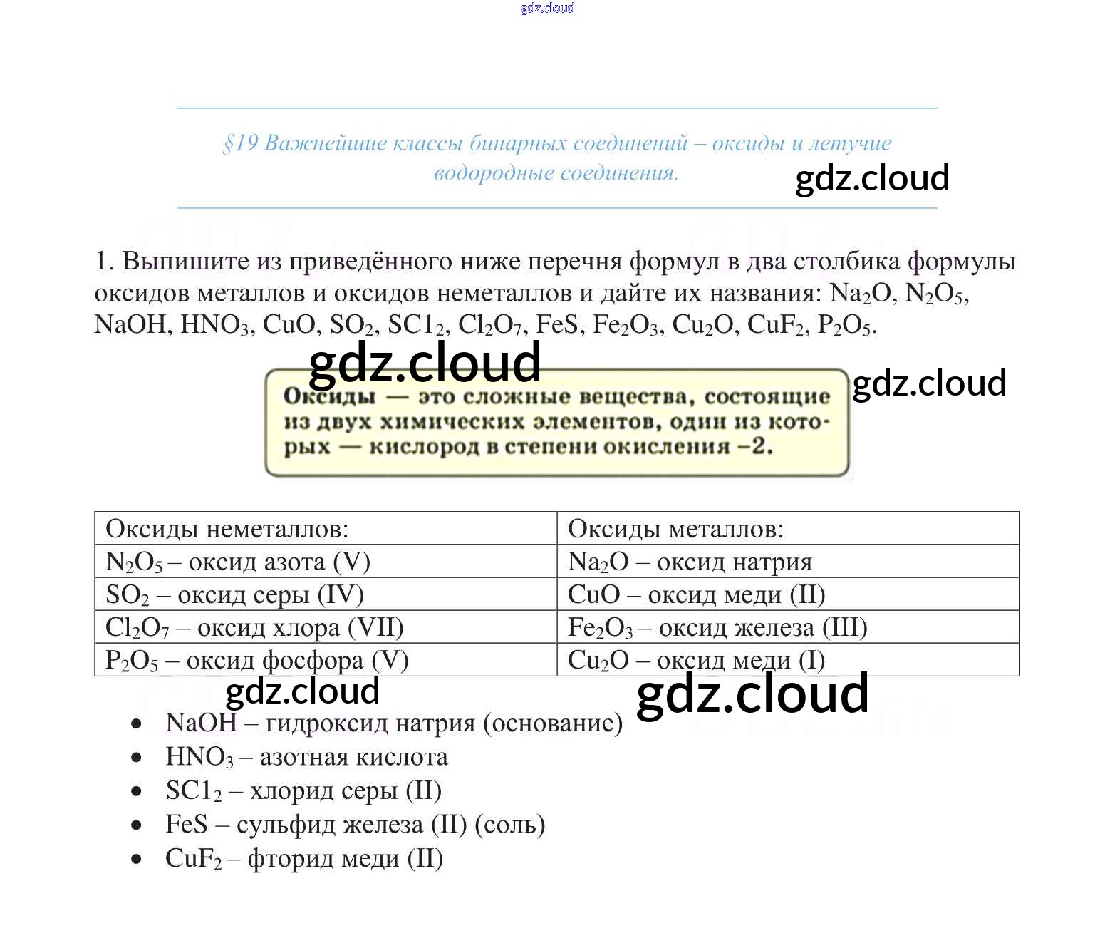 Ответ на задание 1 Учебник Химия за 8 (восьмой) класс Габриелян Вертикаль 2019 ФГОС онлайн и без номера телефона.