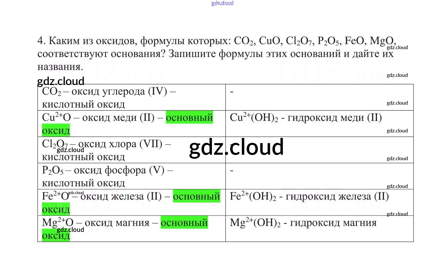 Ответ на задание 4 Учебник Химия за 8 (восьмой) класс Габриелян Вертикаль 2019 ФГОС онлайн и без номера телефона.