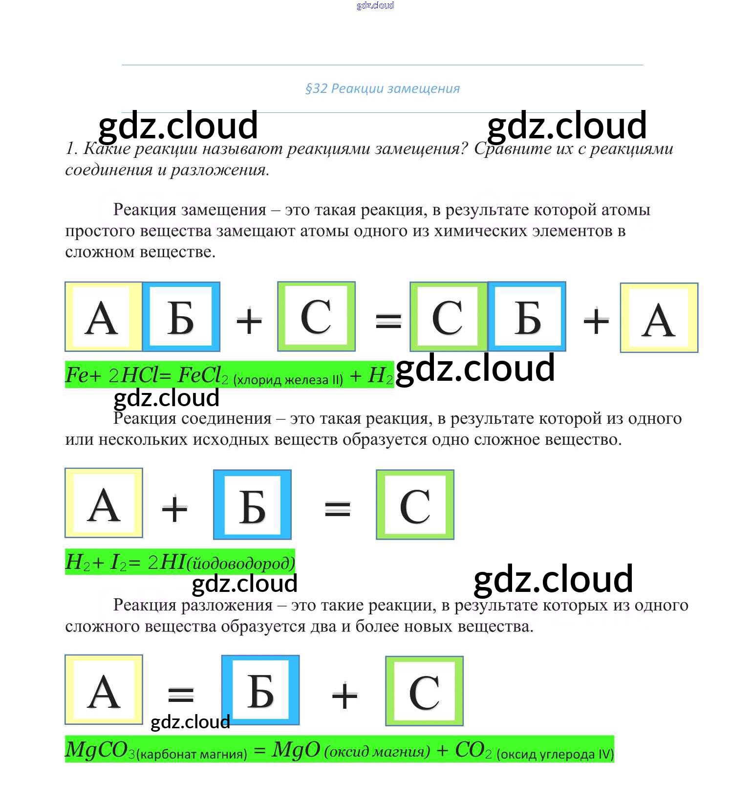 Ответы к §32 по Химии 8 класс Учебник Габриелян Вертикаль Дрофа
