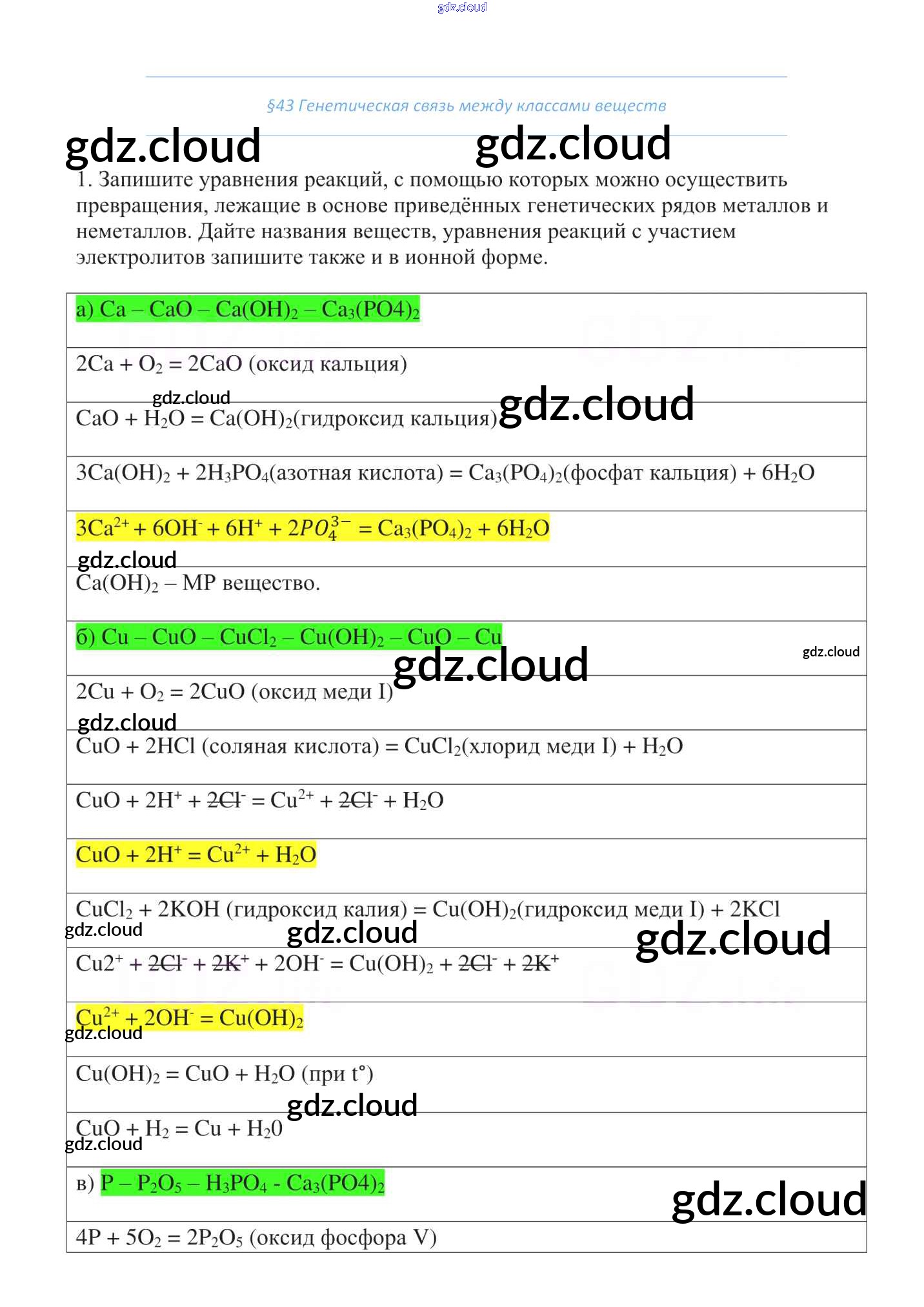 Ответы к §43 по Химии 8 класс Учебник Габриелян Вертикаль Дрофа