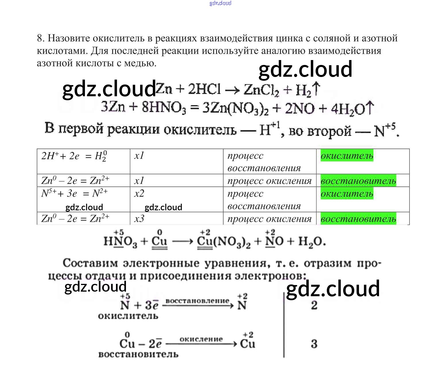 Ответ на задание 8 Учебник Химия за 8 (восьмой) класс Габриелян Вертикаль 2019 ФГОС онлайн и без номера телефона.