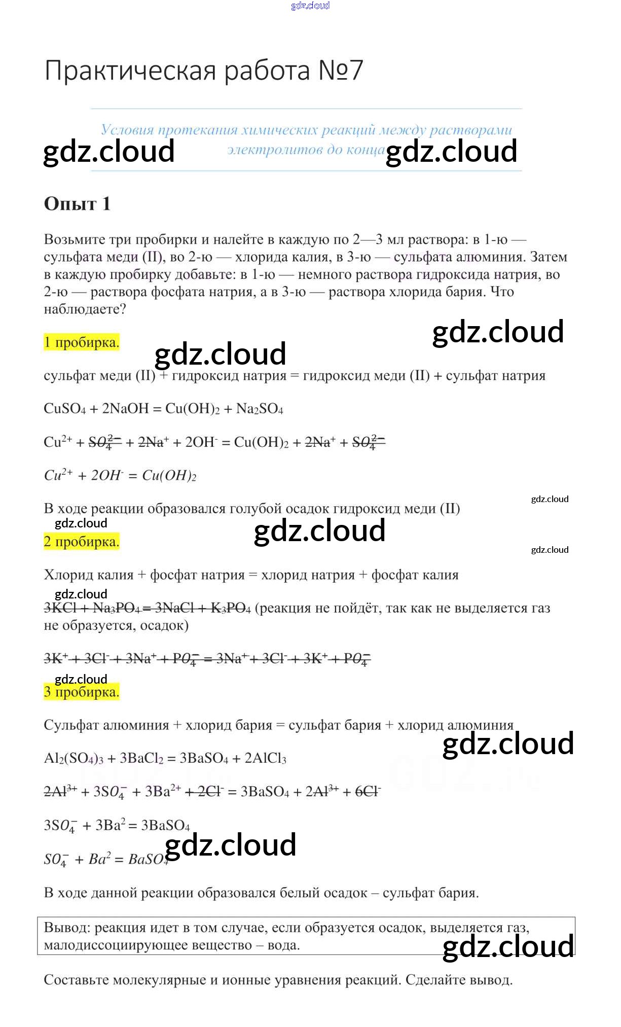 Пр-7 Ответы к практическим работам по Химии 8 класс Учебник Габриелян Вертикаль Дрофа